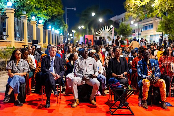 Minister of State Umutoni Sandrine, alongside HE Antoine Anfre (Ambassador of France to Rwanda), HE Doudou Sow (Ambassador of Senegal), Michel Evéquoz, and Moussa Sène Absa, officially launched the Kigali Cine Junction Film Festival 2025, a celebration of African cinema and global storytelling.