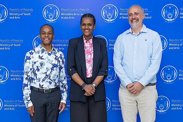 The Minister of State Sandrine Umutoni met with Mellon Foundation’s J. G. Moore and Heritage Management Organization’s Dr. Kyriakidis to strengthen collaboration in heritage preservation and community-rooted arts spaces. The discussion emphasized local ownership, capacity building, and creating sustainable cultural initiatives that empower Rwandan communities while safeguarding the nation’s rich heritage.